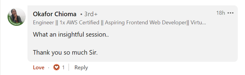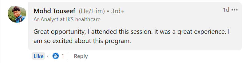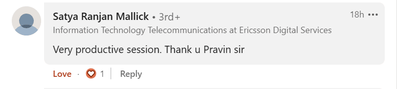 It was a great session with a simple explanation for non-IT background like me, now I am getting it very well, Thank you so much Pravin Mishra for your efforts