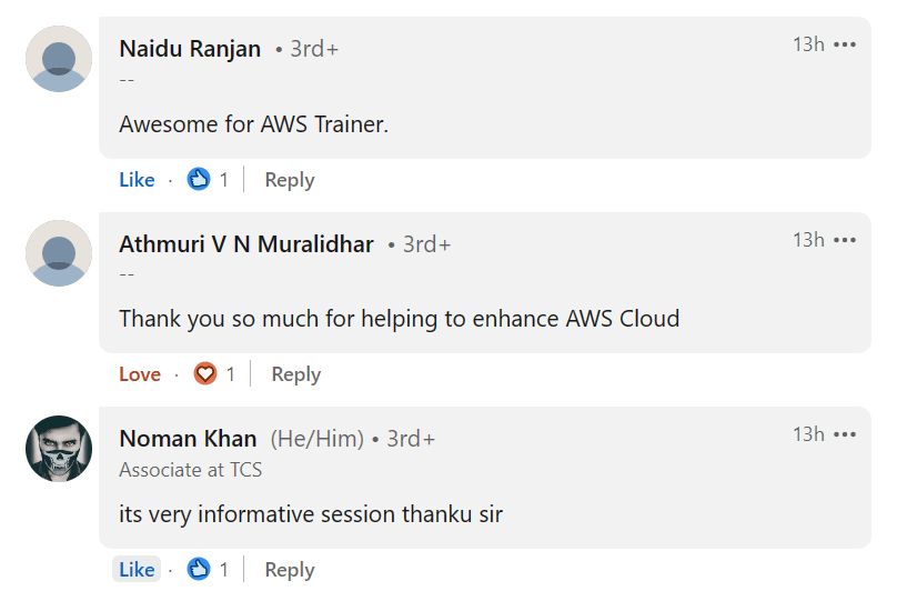 Very good explanation by sir and we enjoyed the session and we learned creation of IAM user S3 bucket EC2 instance , VPN and RDS.