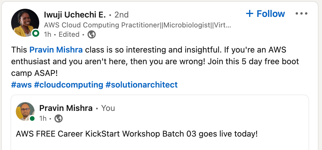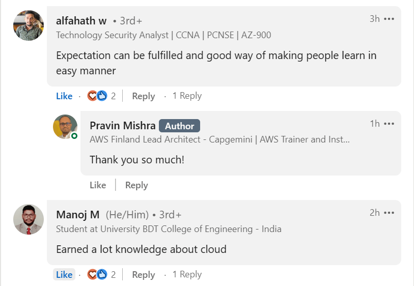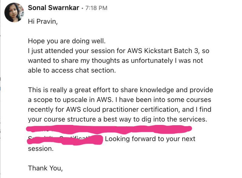 This workshop is worth it, you can't afford to miss it if you are looking to go higher in your cloud journey. Thank you, Pravin Mishra